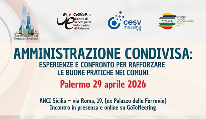 Amministrazione condivisa: il 29 aprile a Palermo l’avvio di un percorso fra CSV siciliani e ANCI Sicilia