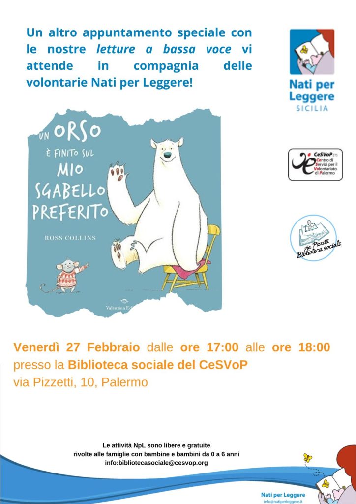 La Biblioteca Sociale del CeSVoP è lieta di invitarvi a un nuovo, magico appuntamento con le volontarie di Nati per Leggere Sicilia. Un pomeriggio dedicato all’incanto delle storie, dove la voce si fa bassa per lasciare spazio alla fantasia e alla meraviglia.
