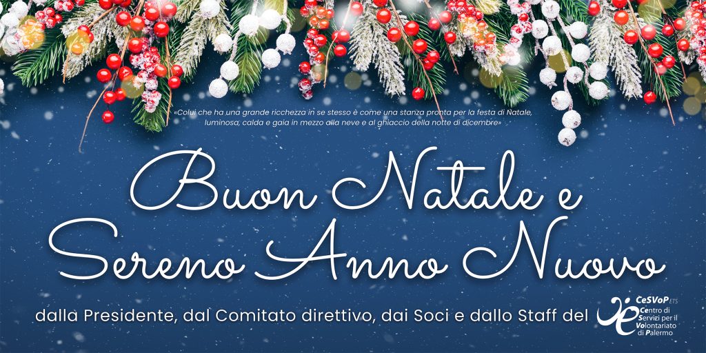 La presidente, il Comitato direttivo, i soci e lo staff del CeSVoP augurano un sereno Natale e un felice Anno Nuovo a tutti i volontari, i soci, le associazioni e le loro famiglie.