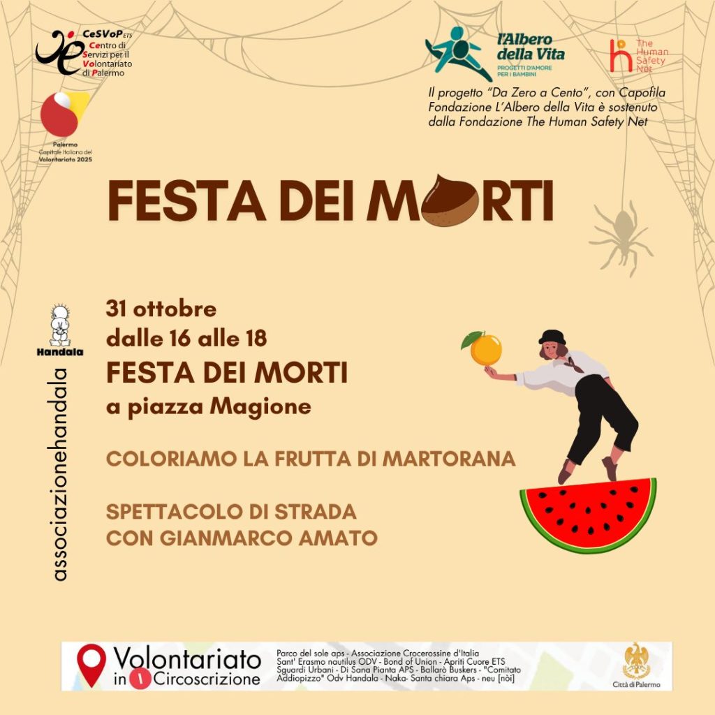 Venerdì 31 ottobre, piazza Magione, Palermo un pomeriggio dedicato a grandi e piccini, con un programma ricco di attività che riscopre il piacere di vivere lo spazio pubblico come luogo di incontro e condivisione.