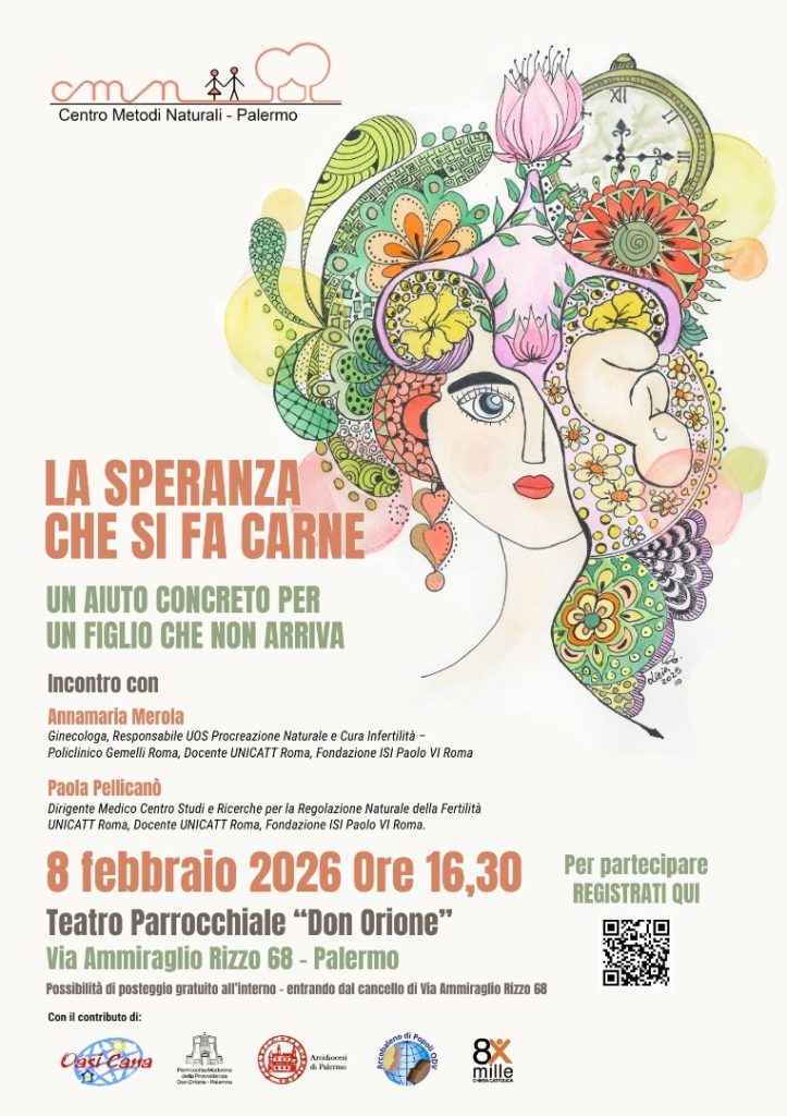 Il Centro Metodi Naturali di Palermo, in partnership con Oasi Cana, l’Arcidiocesi di Palermo e l’ODV Arcobaleno di Popoli, promuove un importante convegno dedicato alla sensibilizzazione sulla fertilità.