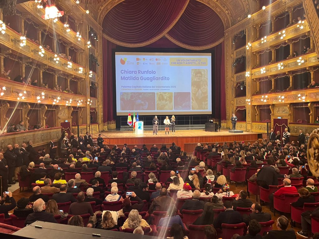 Ottocento persone hanno gremito questa mattina il teatro palermitano per la cerimonia di chiusura di Palermo Capitale Italiana del Volontariato 2025, un anno che ha trasformato la città in un laboratorio di cittadinanza attiva coinvolgendo oltre 200 realtà tra enti del Terzo settore, parrocchie, scuole e gruppi sociali.