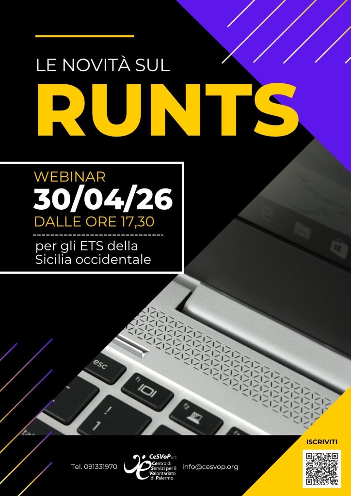 Il CeSVoP organizza per giovedì 30 aprile 2026, a partire dalle ore 17.30, un webinar gratuito dedicato agli Enti del Terzo Settore (ETS) della Sicilia occidentale su un tema di grande attualità: le novità introdotte dal Ministero del Lavoro e delle Politiche Sociali in materia di RUNTS – il Registro Unico Nazionale del Terzo Settore (decreto ministeriale n. 2 del 13 gennaio 2026 pubblicato in GU il 20 marzo 2026).