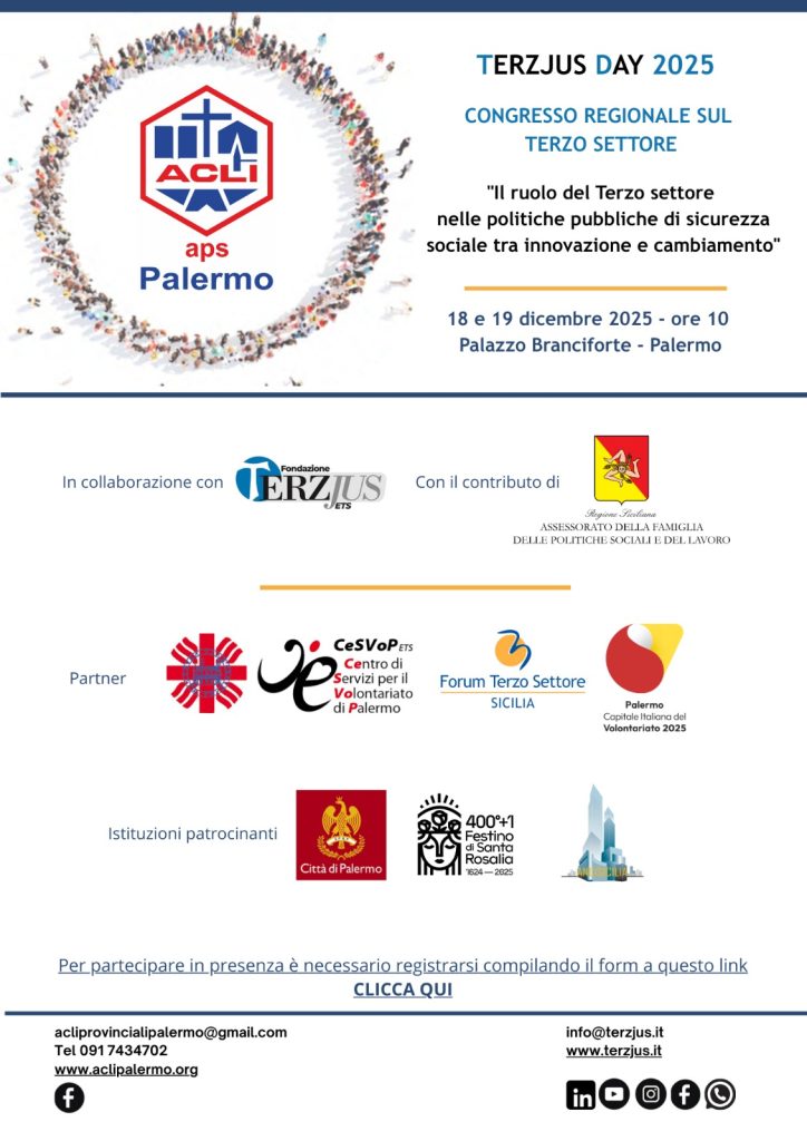 L’evento è promosso dalle ACLI Provinciali di Palermo in collaborazione con la Fondazione Terzjus ETS, con il contributo della Regione Siciliana.